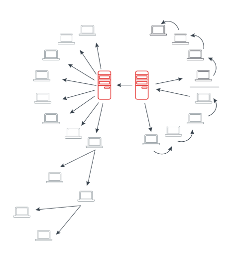 Взлом одного сегмента гибридной архитектуры не приведет к краху всей системы целиком, потому что, если уязвимость найдена в протоколе работы конечной точки, это не означает, что та же самая уязвимость будет распространять вредонос через центральный сервер управления. То есть атака на одну подсеть не приведет к заражению сети целиком.