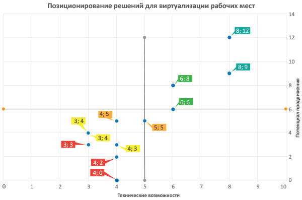 Отечественные вендоры предлагают много решений для организации виртуальных рабочих мест. Для того чтобы сделать оптимальный выбор, нужно проанализировать параметры каждого варианта и оценить их в совокупности, исходя критичности того или иного параметра для целевой инфраструктуры.
