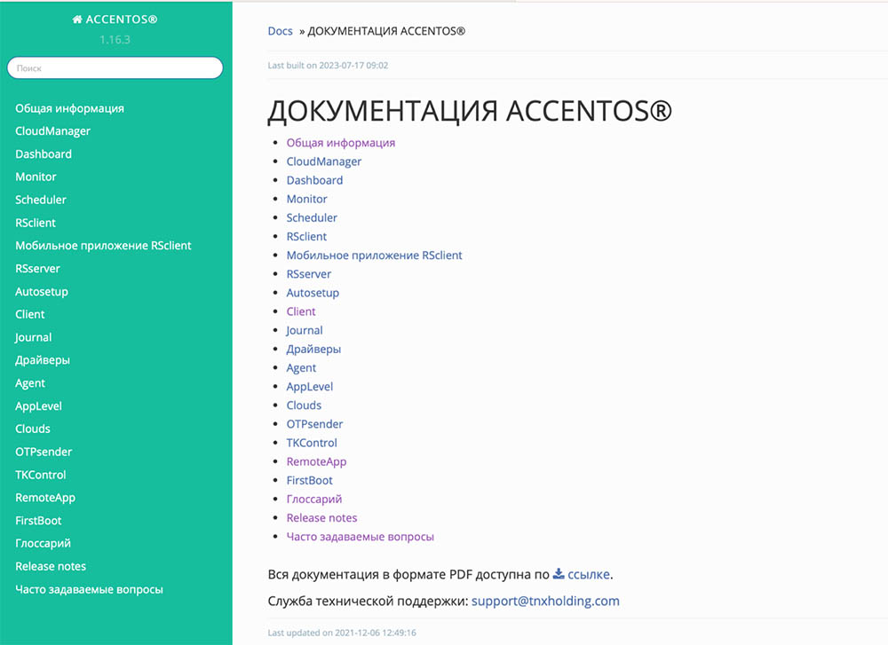 Рис. 1. Портал с документацией на решения AccentOS
