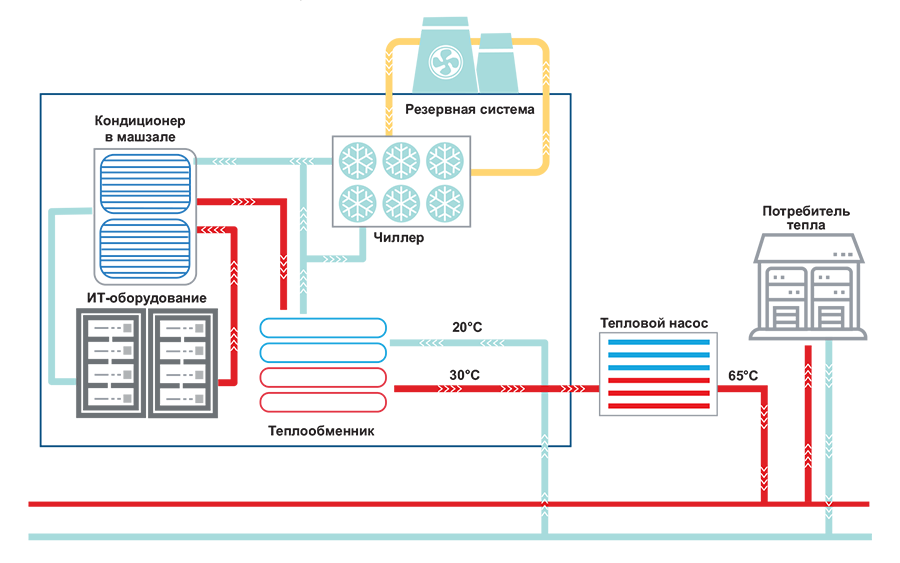 Рис. 1. Как отработанное тепло передается из ЦОДа потребителю
