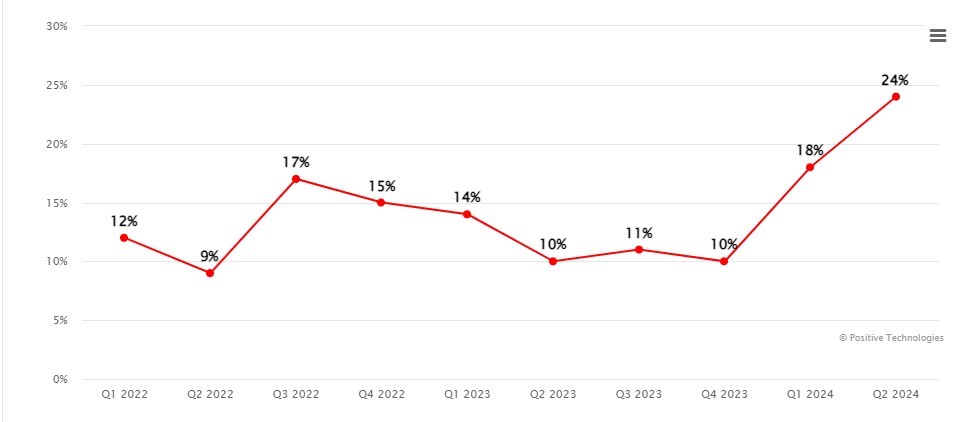 Источник: исследование Positive Technologies «Утечки конфиденциальных данных из организаций – 1-е полугодие 2024»