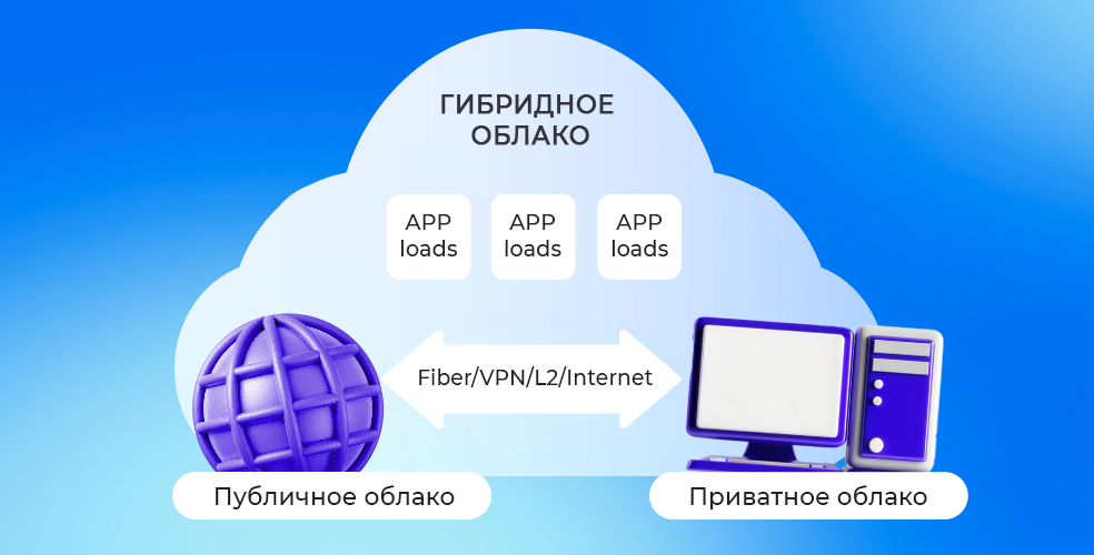 Гибридное облако сочетает в себе публичное и приватное облака и позволяет использовать преимущества обоих типов – часть данных остается внутри компании, а другая обрабатывается в облаке. Например, можно хранить конфиденциальную информацию в защищенной приватной среде, а менее чувствительные данные либо приложения, требующие существенной гибкости в масштабировании, – в публичном облаке.