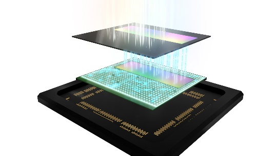 В данном продукте используется стековая конфигурация, при которой соединение Cu-Cu обеспечивает контакт между каждым пикселем SPAD с задней подсветкой (которые расположены в верхней части устройства) и вычислительной схемой для расчета расстояния (в нижней части устройства). Такой подход позволяет получить конструкцию, в которой логическая схема размещена под пикселями, с сохранением высокой светосилы и малого размера пикселя – всего 10 мкм. Кроме того, поверхность на которую падает свет в датчике, имеет неровности для его преломления, что позволяет повысить скорость поглощения. Эти особенности обеспечивают высокую эффективность обнаружения фотонов на уровне 24% при длине волны 905 нм, широко используемой в лазерных источниках света автомобильных LiDAR-систем. Это позволяет, например, обнаруживать удаленные объекты, обладающие низким коэффициентом отражения, с улучшенным разрешением и с более высокой точностью определения расстояния. Кроме того, в продукте реализована активная схема заряда, доступная благодаря использованию соединения Cu-Cu для каждого пикселя, что в обычных условиях обеспечивает время отклика для каждого фотона примерно 6 наносекунд.