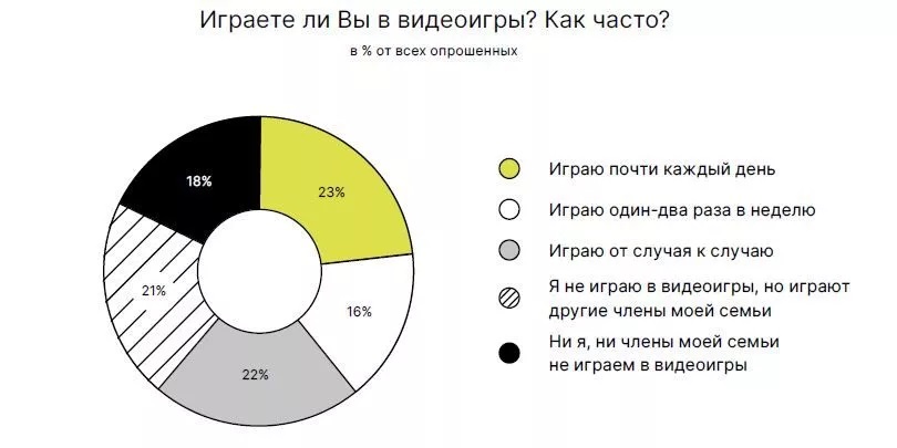 Еще 21% россиян отмечают, что, хотя они сами не играют в видеоигры, члены их семей играют.