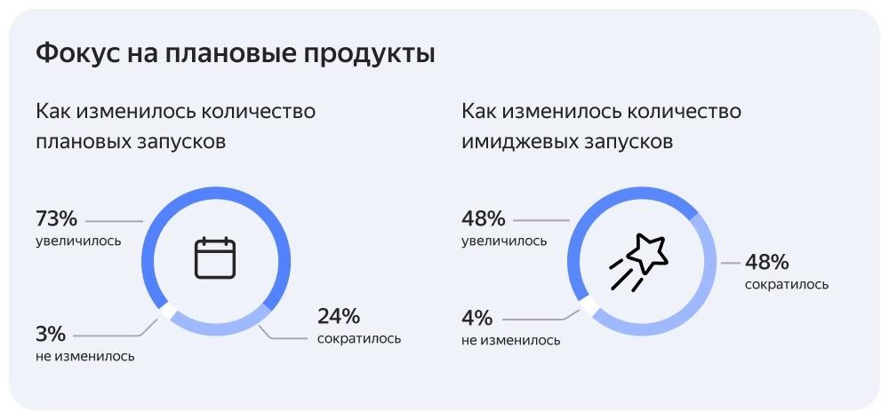 Главная причина увеличения количества плановых запусков – потребность в быстром финансовом успехе, об этом сказали 63% компаний. Несколько участников опроса поделились, что в компаниях создали специальные антикризисные комитеты, которые просчитывают прямые доходы от потенциального запуска каждого цифрового продукта.