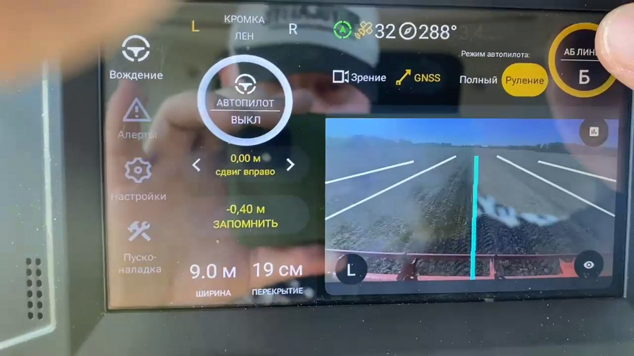 Важно, что механизатор может переключать режимы управления комбайна по компьютерному зрению и спутниковой навигации.