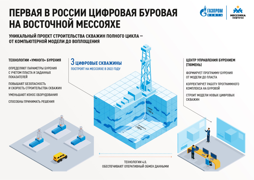 Инструменты индустрии 4.0. позволили проектной команде увеличить скорость бурения более чем на 10% по сравнению со стандартными показателями для скважин данного типа. Технологии цифрового бурения повышают безопасность и скорость строительства скважин, снижают износ технологического оборудования и минимизируют участие человека в принятии решений по ключевым операциям. До конца 2022 года с помощью модернизированных установок на Восточно-Мессояхском месторождении построят три «цифровые» скважины.