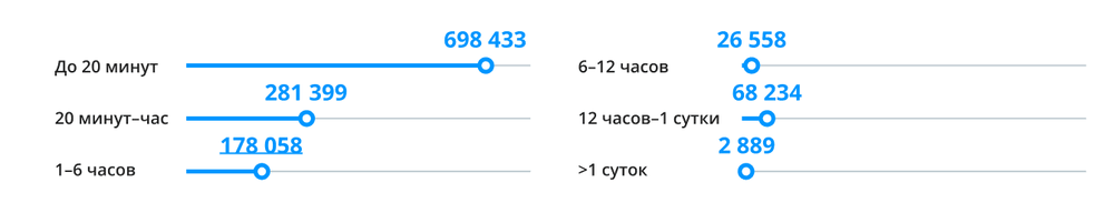 Распределение DDoS-атак по длительности — данные из аналитического отчета DDoS-Guard за 2022 год