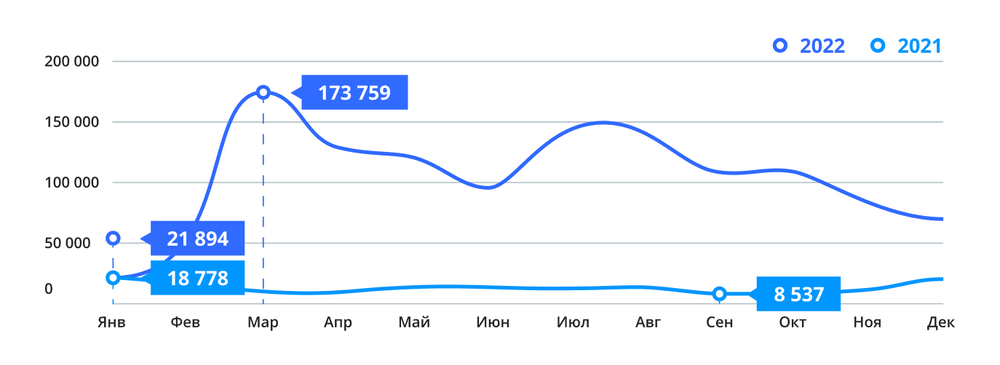 Ландшафт кибератак кардинально изменился в 2022 году из-за геополитических сдвигов. Если в начале года общая тенденция прослеживалась в виде однотипных длительных атак, то уже в феврале картина оказалась совсем иной.
