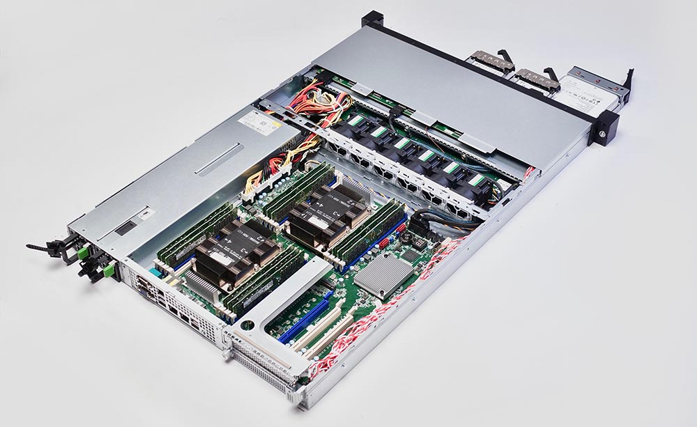 Сервер D108FW предназначен для монтажа в стойку, выполнен в форм-факторе 1U, располагает посадочными местами для размещения восьми физических накопителей – четырех твердотельных и четырех шпиндельных. Доступны модификации сервера с различными версиями BIOS, в том числе с российской БСВВ Numa BIOS, внесенной в единый реестр отечественного ПО, что актуально для проектов в бюджетных и государственных структурах.