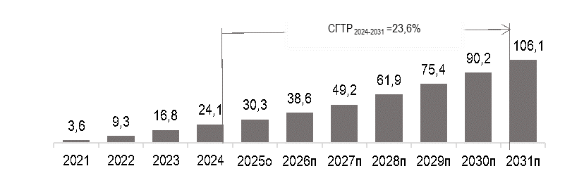 Прогноз рынка ПО УДИ российских разработчиков, 2024–2031 гг.
