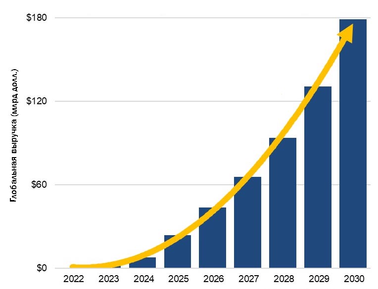 Такие данные опубликовала Synergy Research Group. По прогнозам аналитиков, выручка за 2025 год превысит $23 млрд, а к 2030 году достигнет почти $180 млрд. В среднем рост будет составлять 69% в год.