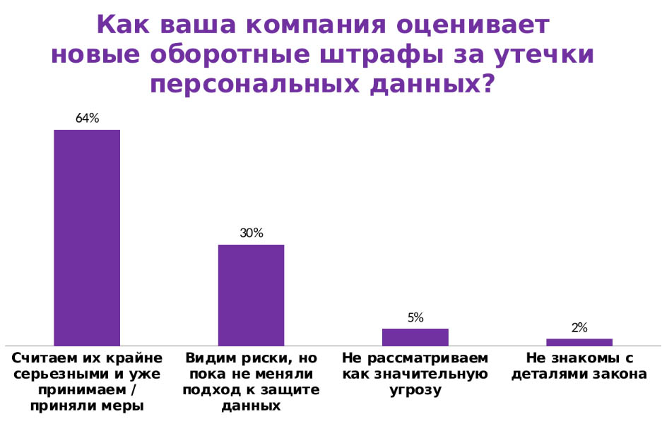 Почти две трети российских компаний воспринимают оборотные штрафы за утечки персональных данных как серьезный риск и уже усилили защиту.