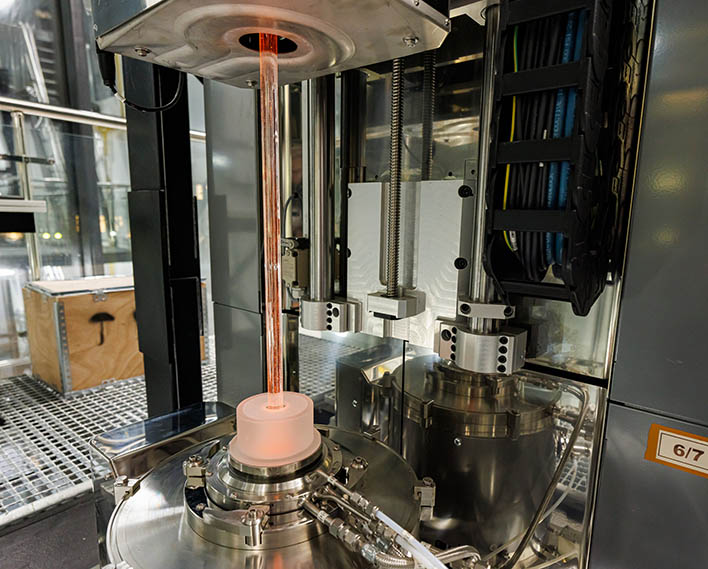 Производят такой продукт на специальных башнях вытяжки — вертикальных установках, в которых заготовка из стекла (преформа) нагревается до температуры размягчения, после чего вытягивается в волокно толщиной до сотен микрон. В процессе контролируются температура, скорость вытяжки, геометрия волокна и параметры защитного покрытия. На башне МГТУ реализованы автоматизированные системы управления, обеспечивающие стабильность параметров и высокую точность изготовления.